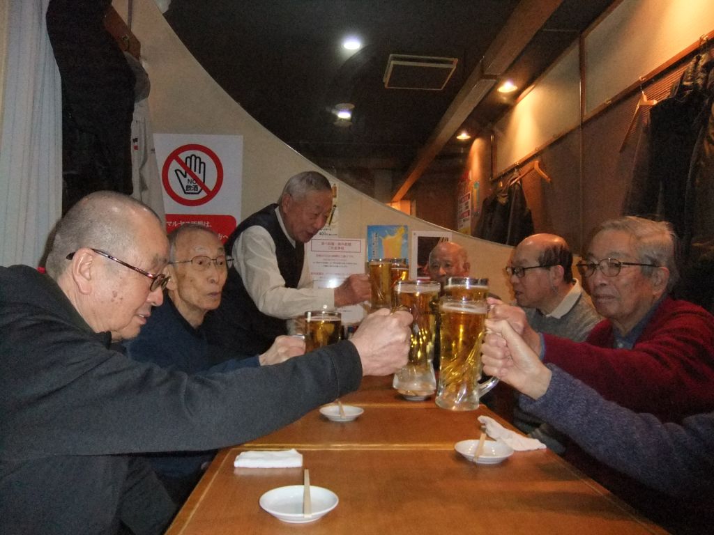 懇親会の会場と場所を移し、初めに北埜会長の挨拶に続いて森支部長の乾杯の音頭で始まった。初めは、とげぬき地蔵の感想でしたが、その内、近況報告・体調・健康の話へと移りました。次回のレクの参加の要請の後、並木会員の一本締めで散会となりました。